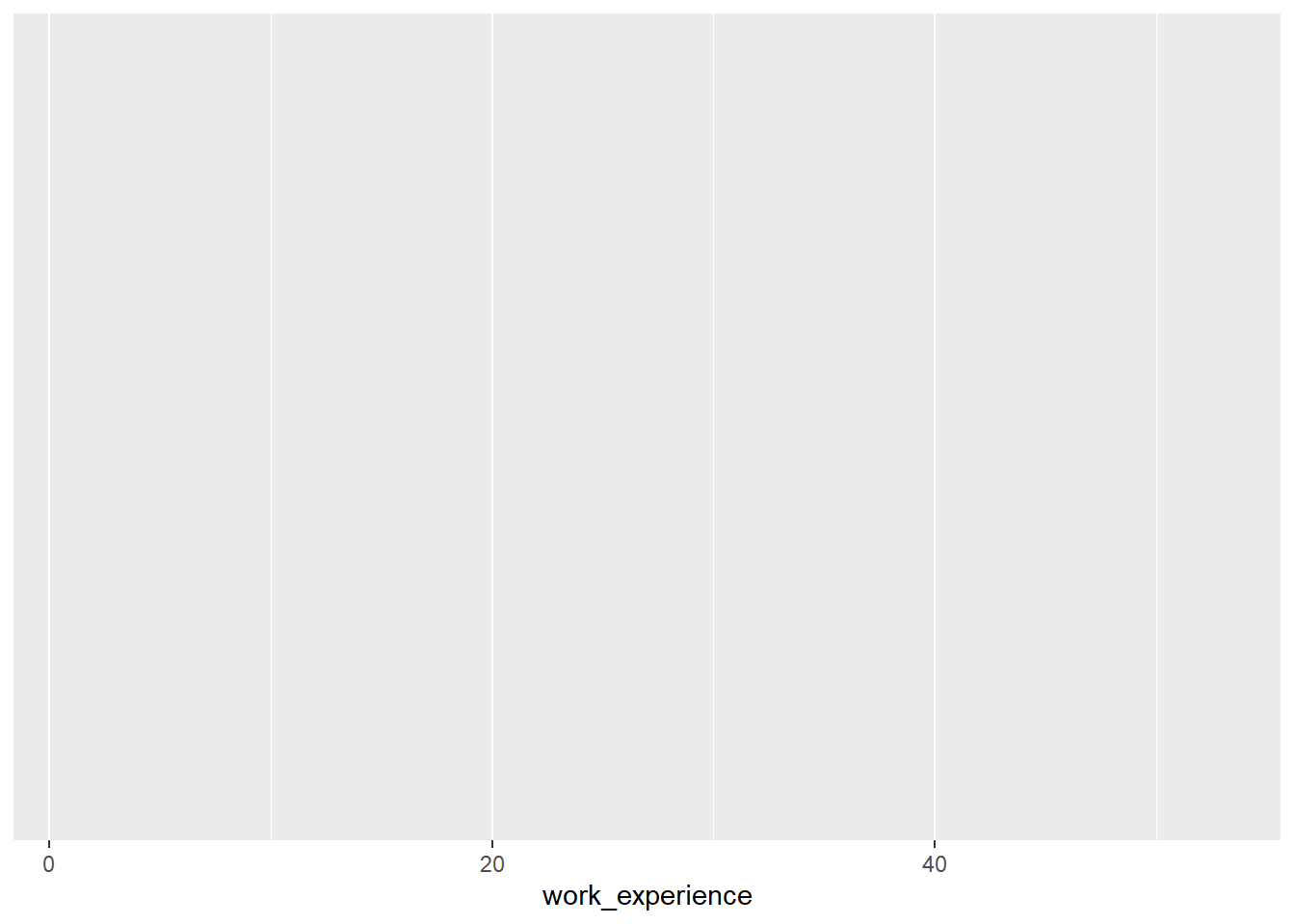 Note that, using the filter() command, we first remove all observations with missing values (NAs) for work_experience, as these cannot be plotted.